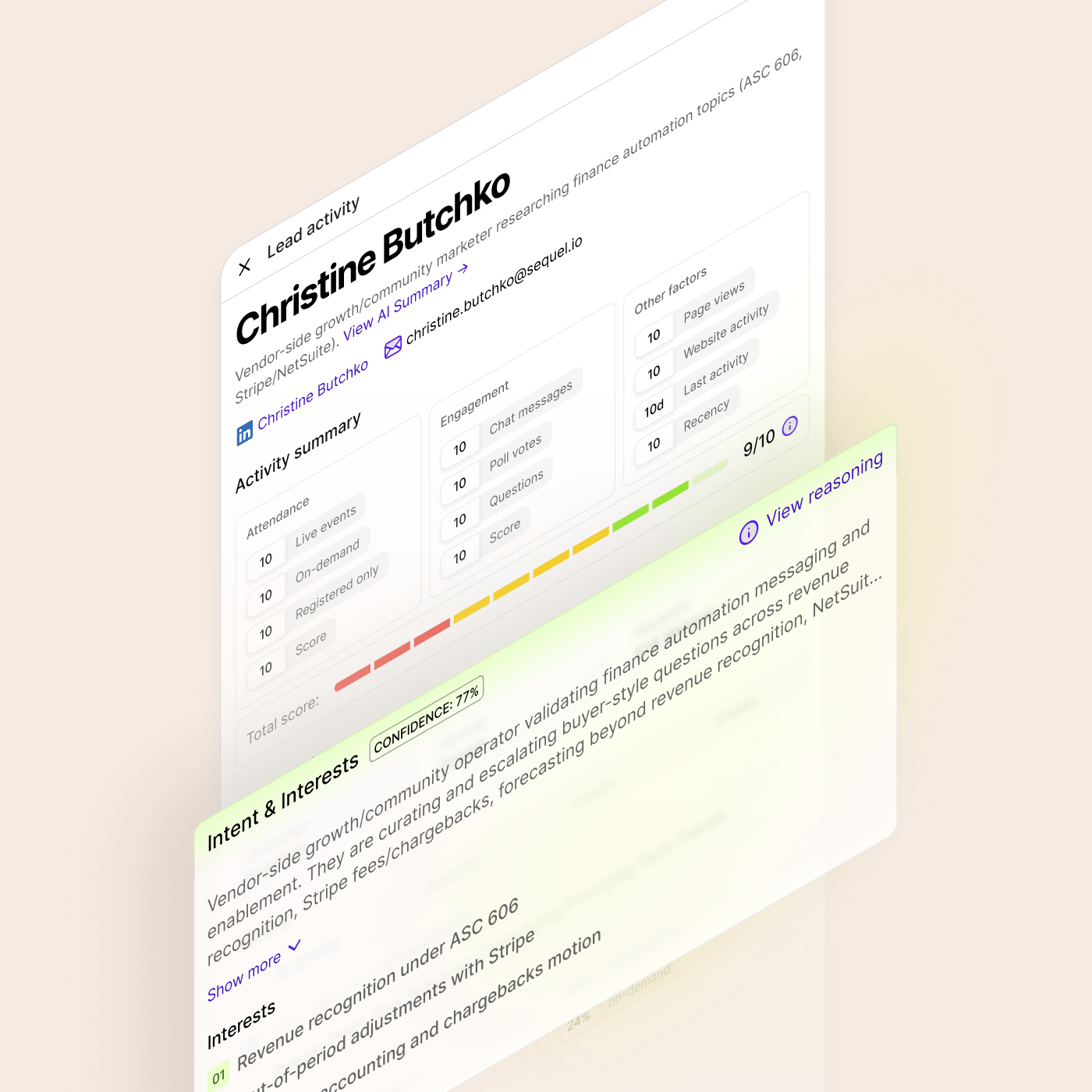 More importantly, Sequel unifies webinar engagement with on-site behavior to create revenue-grade, first-party data. Attendance is just the starting point. Watch time, polls, questions, CTA clicks, and post-event website visits are captured and activated inside your CRM in real time.